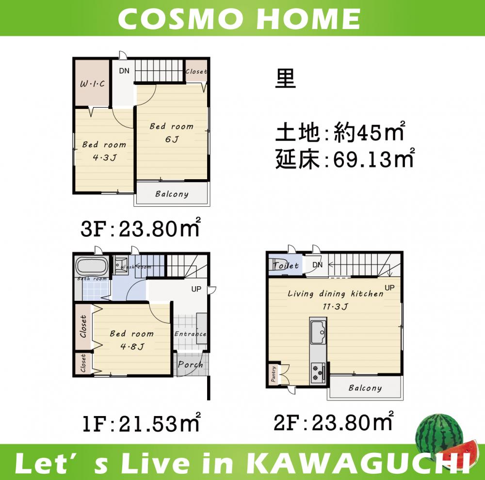 《川口市里 新築戸建て》新井宿駅と鳩ヶ谷駅の2駅利用可のWEBチラシ情報 | さいたま市、川口市、蕨市の不動産のことならCHコスモホーム住宅販売